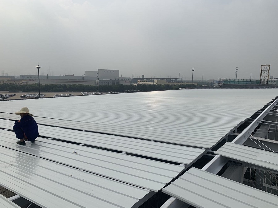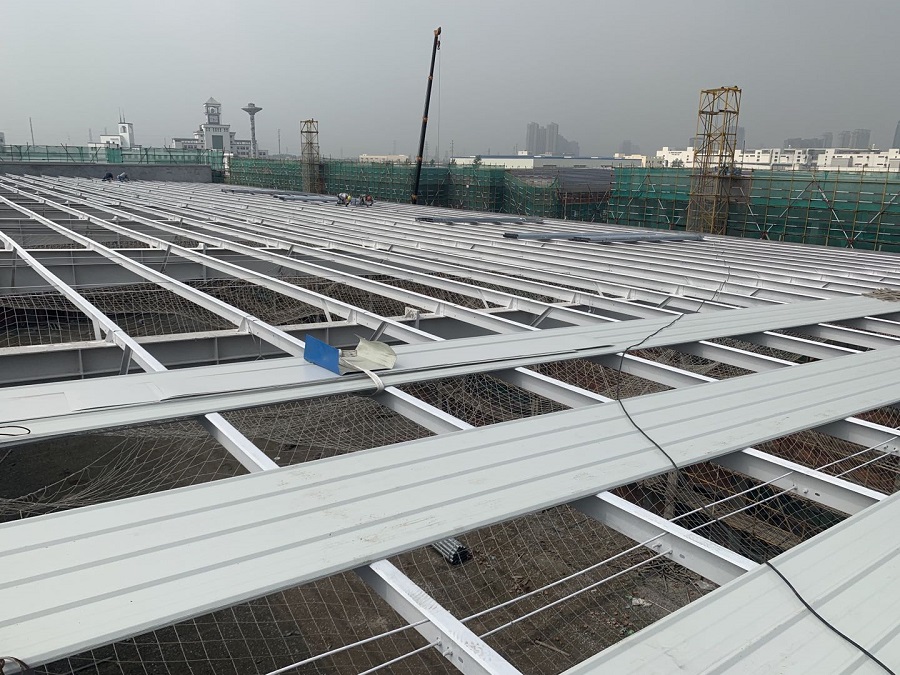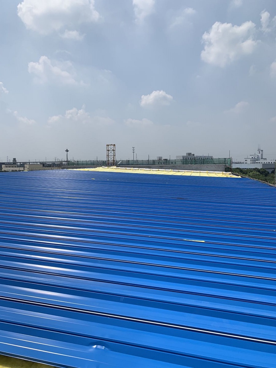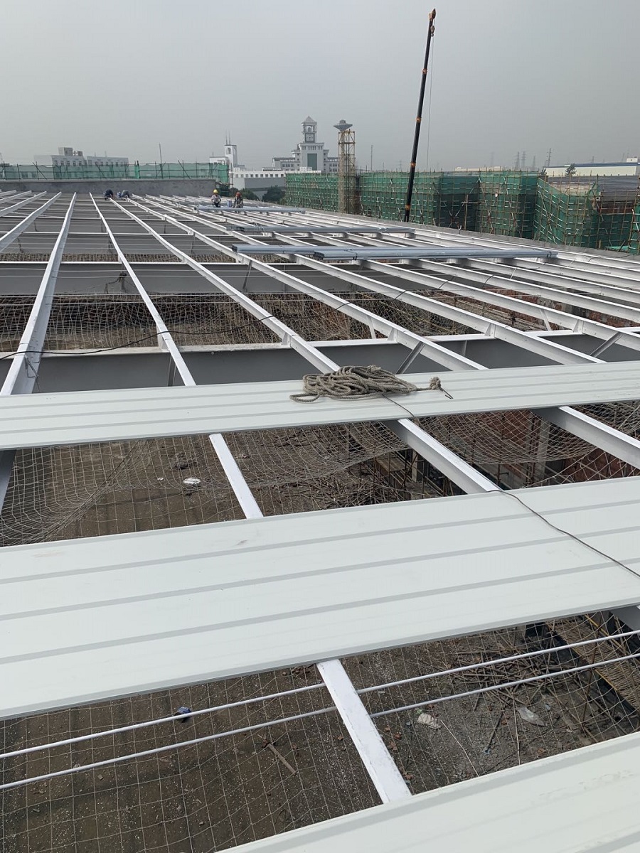 常熟经济技术开发区 万和三期标准厂房工程 钢结构屋面工程 面积26000平方米,双层板屋面系统。