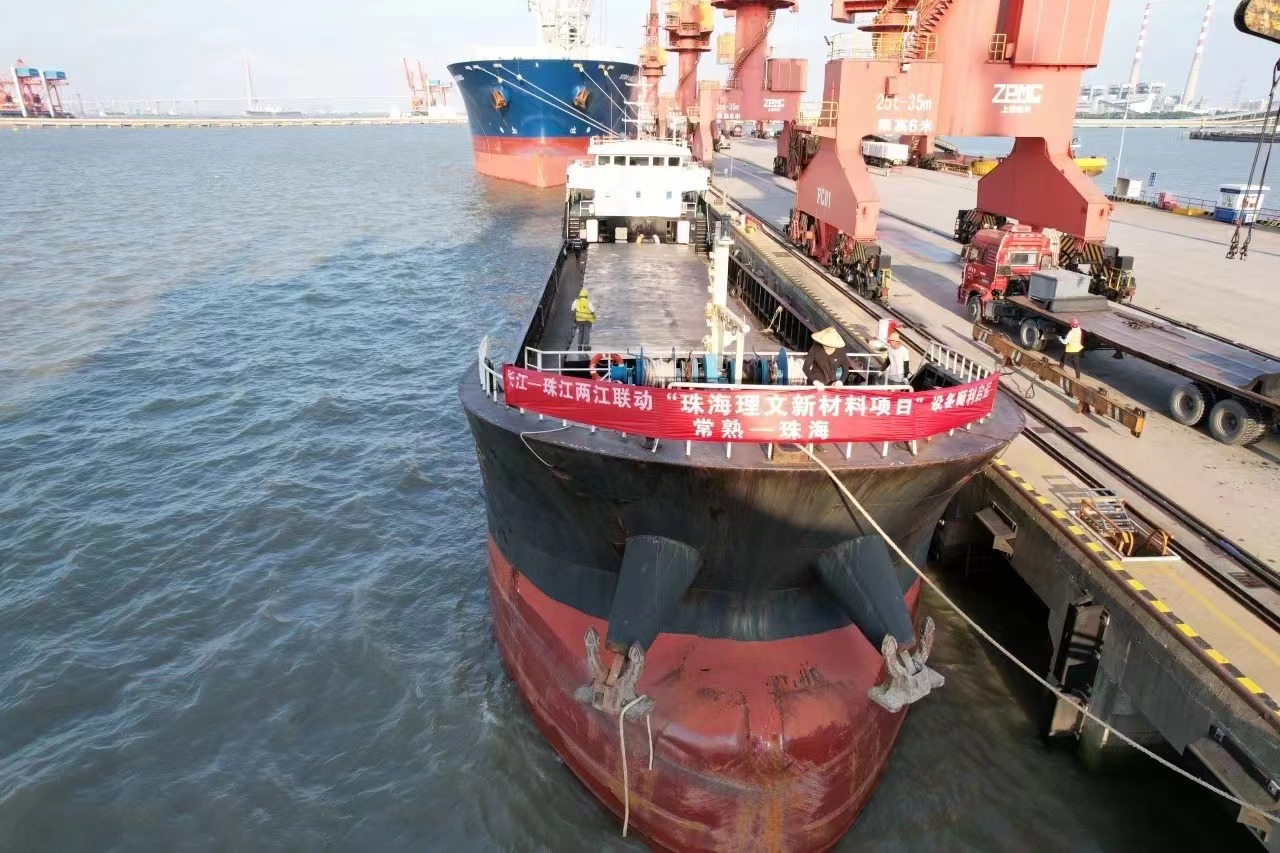 工程位于珠海市金湾区南水镇珠海高栏港经济区石油化工区平湾一路39 号,工程包含钢柱约568吨,屋面梁约588吨,次钢结构和钢板、钢梯累计245吨,工程难度大且运输距离远。公司克服重重困难,通过兴华港口和珠海高栏港两港联动,精心计算装载空间和装载能力,并加强运输过程中的成品保护,最终顺利完成了该工程。