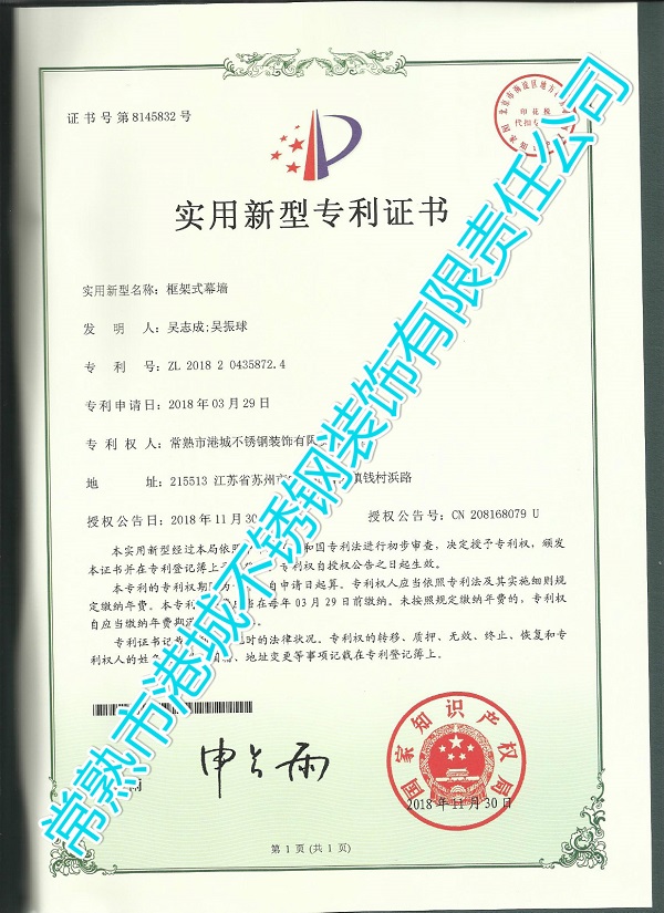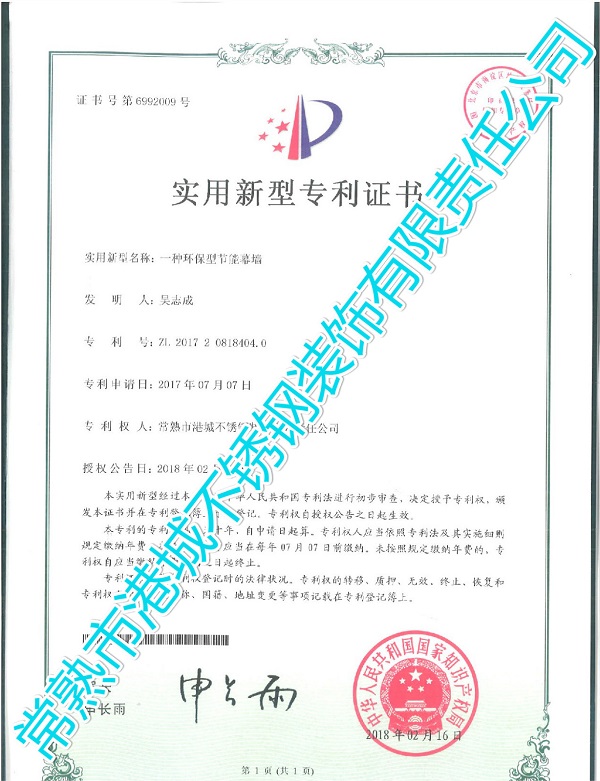 实用新型专利:一种环保型节能幕墙